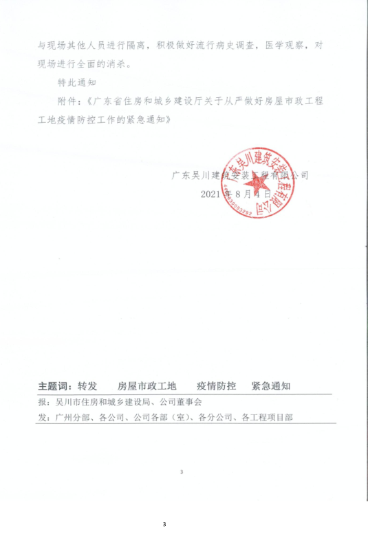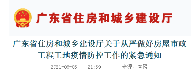 近期,國內多地突發本土疫情,江蘇宿遷、湖北武漢等地建筑工地已出現新冠肺炎確診病例,疫情在工地傳播的風險進一步加大。為深入貫徹落實習近平總書記關于疫情防控工作的重要指示精神,根據省委、省政府關于疫情防控的工作部署,按照全省疫情防控和安全生產電視電話會議要求,我廳決定在認真執行2020年2月印發的《廣東省房屋市政工程工地防控新冠肺炎疫情工作指引》的基礎上,對部分常態化疫情防控措施進行提檔升級,提出了以下9方面要求。請結合本地區工作實際認真貫徹落實,毫不松懈地抓好房屋市政工程工地疫情防控各項工作。