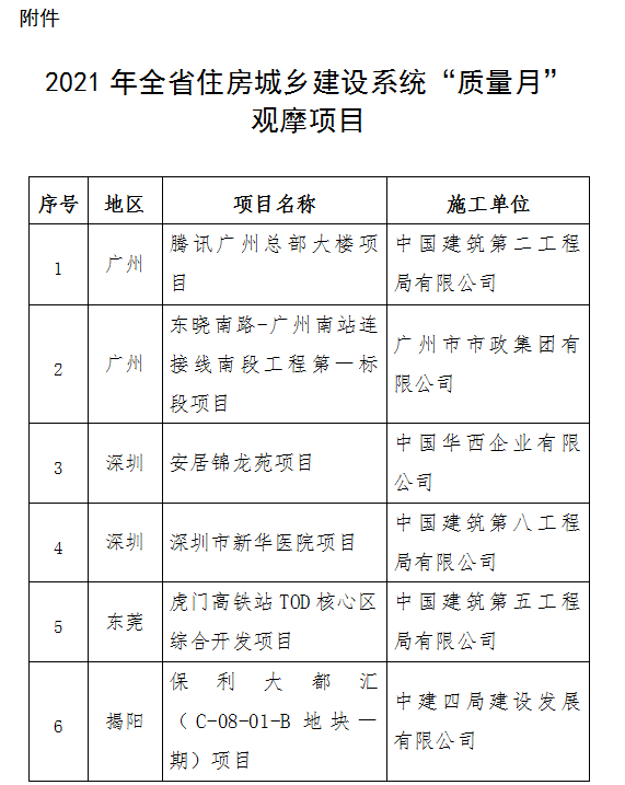 附件:2021年全省住房城鄉建設系統“質量月”觀摩項目