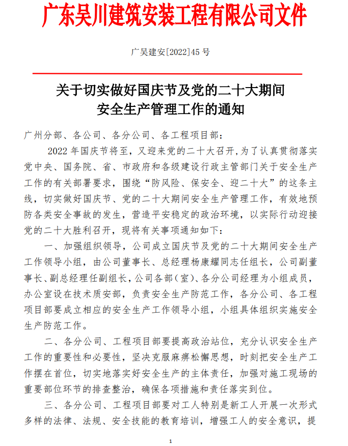 關(guān)于切實做好國慶節(jié)及黨的二十大期間安全生產(chǎn)管理工作的通知
