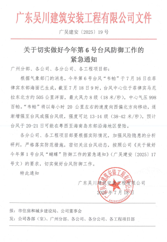 關于做好今年第6號臺風防御工作的緊急通知